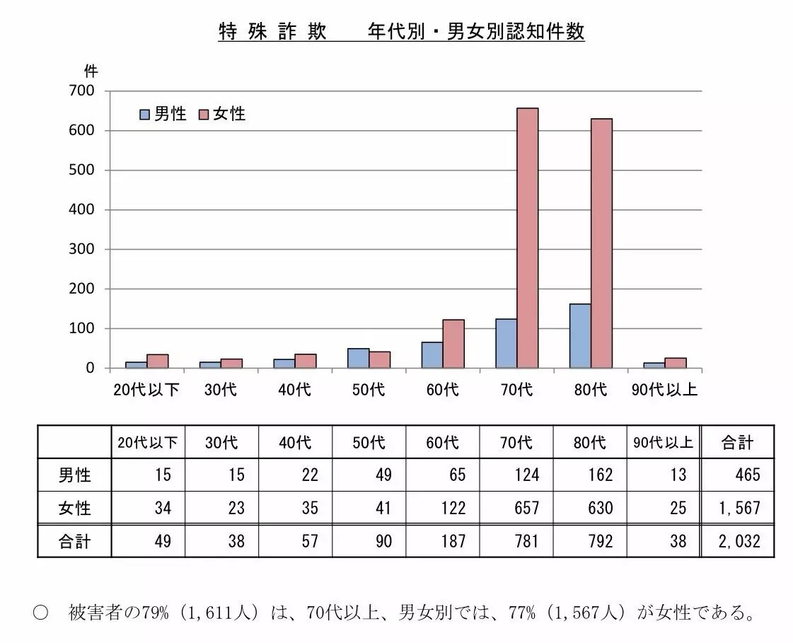 同时,报告显示,特殊诈骗“中招”人群大多在70岁以上,女性居多。