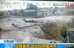 12日下午4点左右,甘肃白银平川区遭遇短时强降雨,不到一小时降雨量就达 120毫米。暴雨引发山洪,路边停放的车辆冲翻,部分民房被冲垮。当地一所学校的围墙也被冲垮,大量洪水倒灌进学校操场内,所幸学校已经放假。