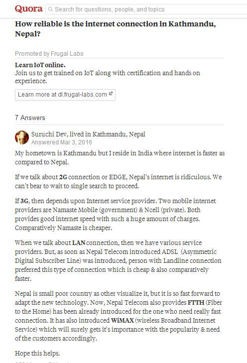 外事儿在外国版知乎qoura上,发现了“尼泊尔首都加德满都的网咋样了?”的提问,最高票答案是这样说的: