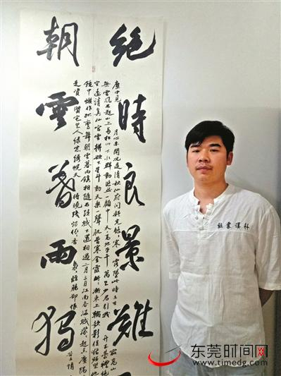 东莞时间网讯 近日,厚街镇竹溪小学书法老师伍志明的书法作品在25000件投稿作品中脱颖而出,成功入围全国第八届楹联书法作品展。事实上,集广东省书法家协会会员、中国硬笔书法家协会会员等头衔于一身的伍志明并非科班出身,凭借着一腔热爱书法的热情,从大学至今,他每天抽出五六个小时练习书法。