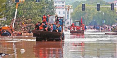 暴雨发生后,吉林市公安消防支队永吉大队立即出动消防官兵进行抢险救援。