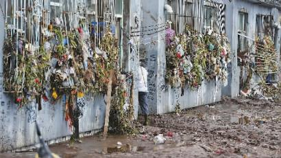 “这水,比2010年的还要猛!”附近的鞋店老板刘萍介绍,她店内200多双鞋,全都不见了。周边商铺,大部分的情况和刘萍的鞋店差不多———卷闸门被冲毁,店内物品被冲走或者严重损坏,屋内淤泥遍布。