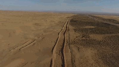 在穿越沙漠路段,都有鳍形沙袋防风固沙,并且建有动物迁徙通道。