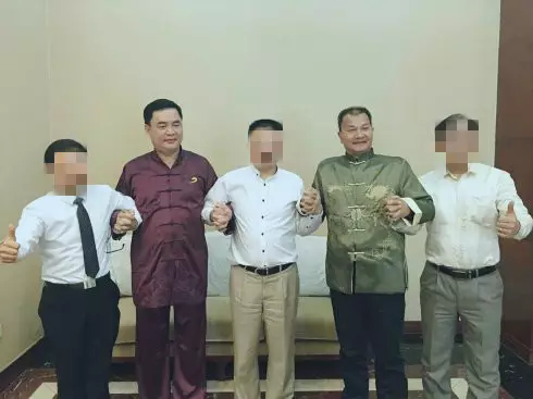 这是最隆重的一套,他右手边的一男一女也是幸福大中华组织的核心成员,经常出镜。