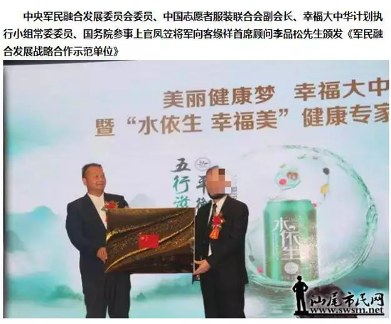 今年5月,上官凤笠在厦门出席“美丽健康梦,幸福大中华”暨水依生幸福美健康专家高峰论坛。身份是“中央军民融合发展委员会委员,中国志愿者服装(注:此处似应为服务,但原文为服装)联合会副会长,幸福大中华计划执行小组常委委员,国务院参事”。