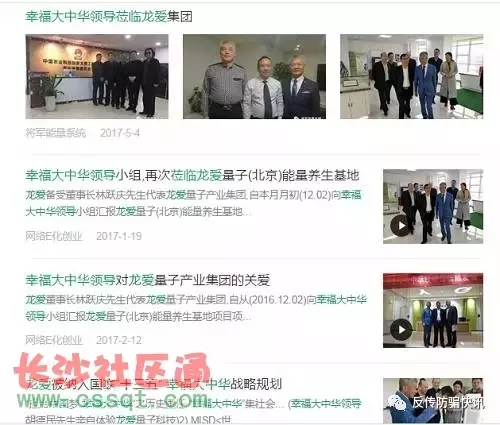 受骗上当者回忆,“龙爱量子”公司宣传自己是国家项目,有国家背景,多位领导参与支持,作为佐证,网站和微信有很多所谓的“中央领导为公司站台”的照片。