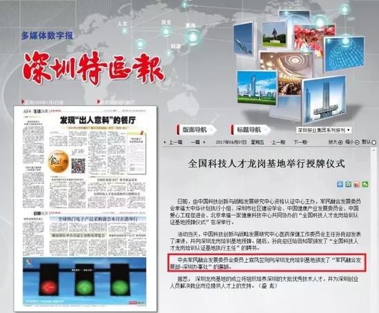 深圳特区报今年4月7日报道,“中央军民融合发展委员会委员”上官凤笠向深圳龙岗基地颁发了“军民融合发展部-深圳办事处的匾额”。