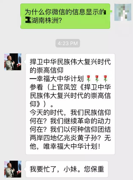 国务院参事室的声明是6月23日发的,之后上官凤笠的博客还更新了博文,并留下自己的手机号码欢迎媒体联系,我们试着加微信,同时拨打电话,电话接通了,微信也通过了验证。。。。。。