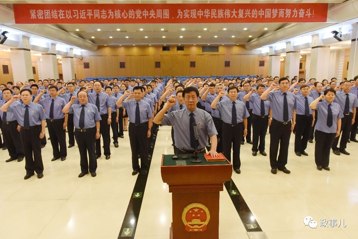 17日上午,最高人民检察院党组书记、检察长曹建明率领最高检机关首批入额检察官进行宣誓。