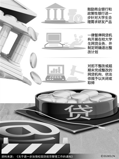 4、中国银监会、教育部、人力资源社会保障部2017年5月27日下发了《关于进一步加强校园贷规范管理工作的通知》(《通知》),要求未经银行业监管部门批准设立的机构禁止提供校园贷服务;且现阶段一律暂停网贷机构开展校园贷业务,对于存量业务要制定整改计划,明确退出时间表。 该《通知》要求:疏堵结合,维护校园贷正常秩序。商业银行和政策性银行在风险可控的前提下,有针对性地开发高校助学、培训、消费、创业等金融产品,为大学生提供定制化、规范化的金融服务,合理设置信贷额度和利率。另一方面,为杜绝校园贷欺诈、高利贷和暴力催收等行为,未经银行业监管部门批准设立的机构不得进入校园为大学生提供信贷服务。