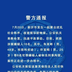 7月19日22时20分,江苏省徐州市新沂市公安局官方微博发布警情通报,称事情起因为厂方一工人黄某因劳资纠纷与厂方发生冲突,并纠结亲属多人到场,引发与厂内员工发生打斗,打斗过程致3人轻伤,3人轻微伤。目前,警方已立案调查,案件正在办理中。