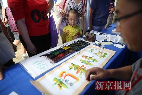 市民在非遗体验区观看传统手工艺制作。新京报记者 侯少卿摄