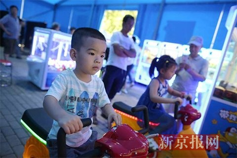 陶然亭公园暑期动漫科普文化活动开幕,小朋友在动漫卡通前留影。