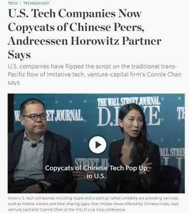 《华尔街日报》近期发表了硅谷最顶尖风投公司Andreessen Horowitz合伙人一番评论,美国科技公司开始模仿中国同行。