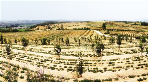 碱厂乡杨树村的张家沟干果基地,有300余户建档立卡贫困户种植大果榛子,共修建榛子梯田6000余亩,全部达产后,预计人均增收1000元以上。 李吉明摄