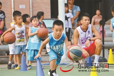 6岁的邱正杰学篮球2年,已成为球队中的“小球星” 记者 陈栋 摄