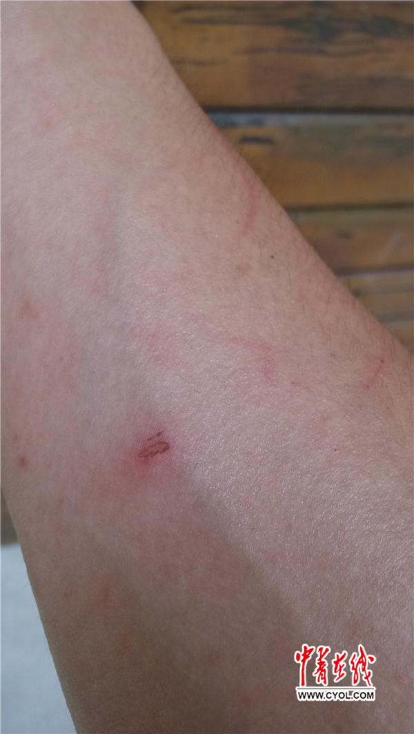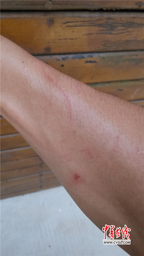 郭靖鹏说,自己在视频中的一些看起来粗暴的动作,是被咬时下意识的本能反应。他与谢湖海均被抓咬受伤。事发半月后,仍可见两名饲养员的小臂和手部伤痕。
