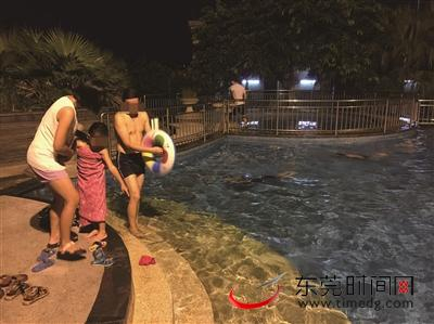 南城鸿福路附近某小区游泳池,家长在游泳池边 给小朋友更换衣服 东莞时报记者 陈栋 实习生 谭智棋 摄