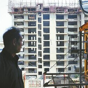 近日,在山大新苑,购房者站在已烂尾多年的楼房里。 记者王汗冰 摄