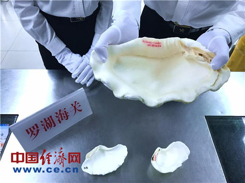图为深圳罗湖海关查获的国家一级保护动物——砗磲。袁娉婷摄