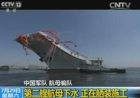 2017年4月26日,我国第二艘航空母舰在大连造船厂下水,标志着我国自主设计建造航空母舰取得重大阶段性成果。第二艘航空母舰2013年11月开工,2015年3月开始坞内建造。目前,航空母舰主船体完成建造,动力、电力等主要系统设备安装到位,航空母舰正按计划进行系统设备调试和舾装施工,并全面开展系泊试验。