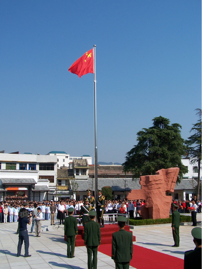 1927年9月20日清晨,起义部队在里仁学校操坪召开了隆重的会师大会。毛泽东用“小石头打烂大水缸”的生动比喻,鼓励大家革命一定会成功。