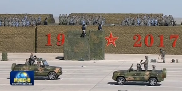 盛夏的草原极目青天,火热的沙场鼓角铮鸣。检阅台前,1927、2017字样十分醒目。1万2千名受阅官兵、600多台受阅车辆装备集结列阵,犹如钢铁长城巍然屹立。100多架战机在6个机场整装编队。这是中国人民解放军首次以庆祝建军节为主题的盛大阅兵,是野战化、实战化的沙场点兵,是人民军队整体性、革命性变革后的全新亮相。