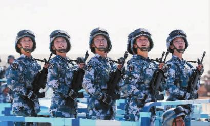 海军海军陆战队方队这是本次阅兵中唯一有女兵参阅的方队。 海军陆战队第一支部队组建于1980年,伴随着人民海军的发展壮大,迅速成长为由海向陆突击的“尖刀”力量。