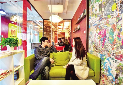 NEXT创业空间拥有1500平方米大容量办公区,图为NEXT创业空间办公区的会客室。