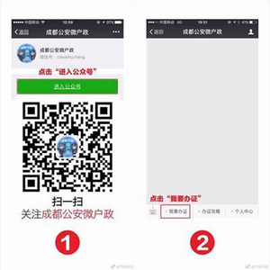 审核通过后使用微信公众号“成都公安微户政”预约办理。