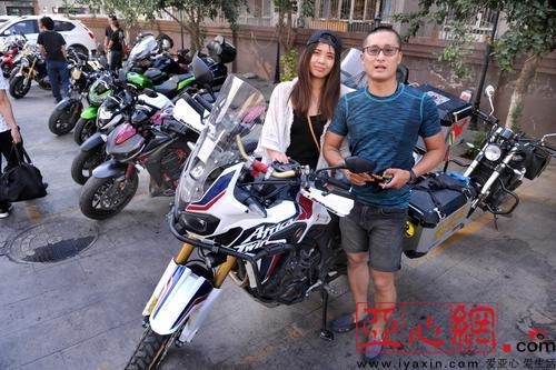 在当天参加聚会的机车爱好者中,有一对特别的骑手,他们是来自上海的于信和他的妻子“敦敦妈”。他们驾驶一辆本田CRF1000L Africa Twin从上海出发,骑行近3W公里,期间穿越了安徽、湖北、湖南、四川、重庆等多个省市。就在聚会的第二天,两人就要启程前往甘肃、青海等地。