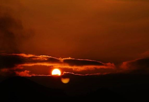 据了解,火烧云是日落时出现的赤色云霞,又叫晚霞。太阳光由七色光混合而成,空气中漂浮的灰尘和水滴等能够对太阳光进行散射作用,将各色光线分散开来。傍晚时,斜射的太阳光通过空气层的路程比较长,受到散射减弱得更厉害。减弱得最多的是紫色光,减弱得最少的是红、橙色光。这些减弱后以红、橙色光为主的彩色阳光,照射在天空中、云层上,就形成了鲜艳夺目的彩霞。