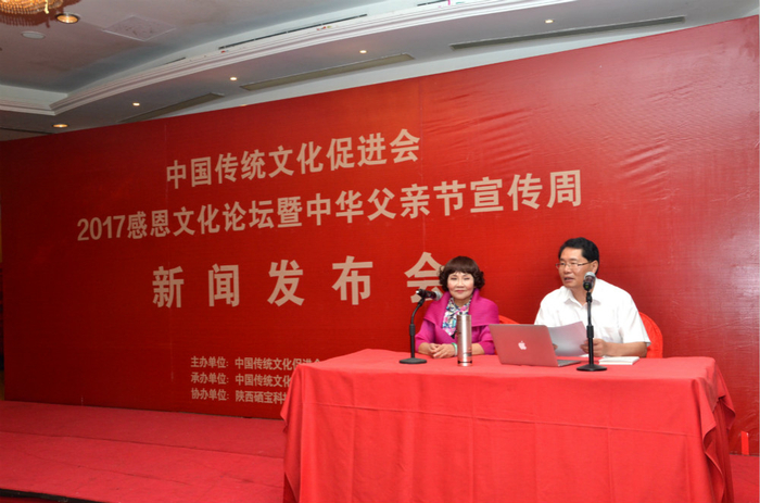 2017年8月1日,“2017中国传统文化促进会感恩文化论坛暨中华父亲节宣传周”新闻发布会在北京陕西大厦召开。本次活动首创四个第一:国内首个感恩文化交流平台——中国传统文化促进会感恩文化委员会揭牌;国内首个感恩文化主题论坛;国内首个中华父亲节宣传周;国内首个感恩文化微信平台正式上线。
