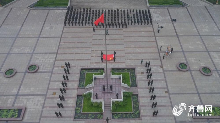 6时30分,迎着第一缕朝霞,由37名官兵组成的护旗方队迈着整齐有力的步伐,护卫着国旗步入现场。身着礼服的官兵们面向国旗肃立行注目礼。随着一声号令,伴随着雄壮的《义勇军进行曲》,五星红旗在曙光中冉冉升起。