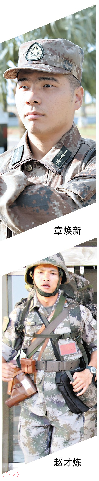 男,1989年1月生,广东深圳人,现任驻广东湛江某部八连排长。2012年12月入伍,历任战士、副班长、排长,2013年获优秀士兵,2015年获优秀学员,2016年获军分区嘉奖。2011年7月,章焕新从华南理工大学金融专业毕业,随后进入深圳一家银行上班。他父母是潮汕商人,在深圳已打下很好的基础,衣食无忧,工作也不错。然而,出乎家人和朋友的意料,2012年冬季,章焕新背着家人偷偷报名参军了。(章焕新受访者供图)