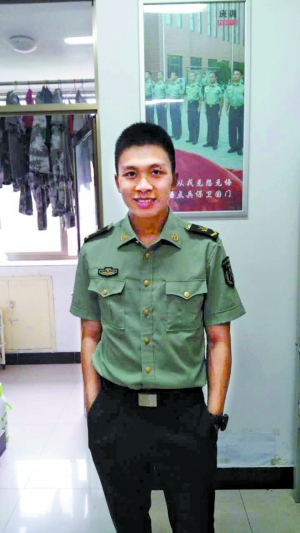 大洋网讯 参军入伍、献身国防是潘孔彬儿时的梦想。2011年,在英国曼彻斯特大学硕士毕业后,21岁的潘孔彬毅然回到家乡,只为圆梦参军。2011年12月,潘孔彬终于穿上了军装,成为英雄部队中的普通一兵,也成为全军为数不多的“海归”士兵、硕士士兵。带着“海归硕士”的光环,潘孔彬展开了军营之旅,他用自己的努力证明着,他是靠拼搏成长起来的“拼二代”。