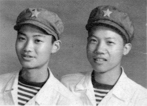 周顺恺不到18岁刚入伍与班长的照片,当时海军装是银灰色的