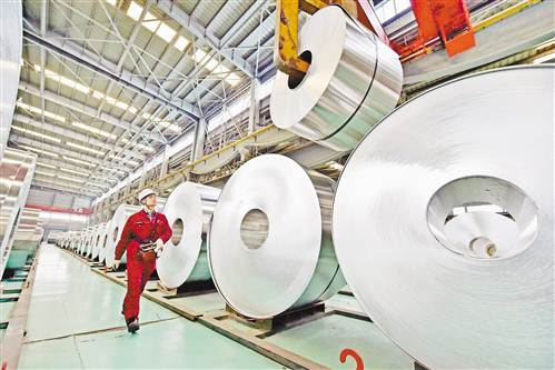 西南铝技术工人正在车间紧张生产。    本组图片均由记者罗斌摄