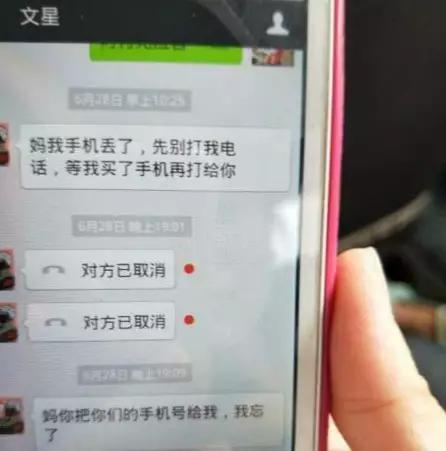 6月28日早上,李文星跟母亲发短信,说手机丢了,别再跟我打电话,等我买了手机再打给你。晚上7点左右,他说忘了母亲的手机号,让她发过来。