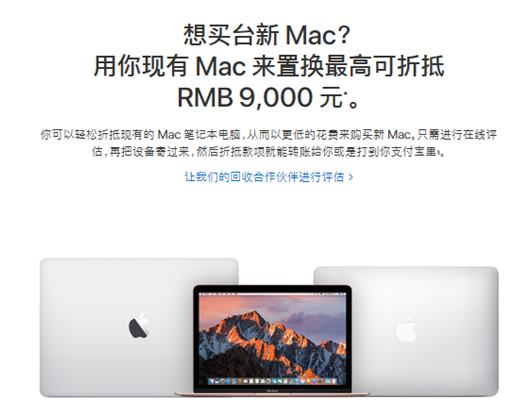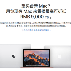 苹果中国推Mac以旧换新活动 最高折抵9000元