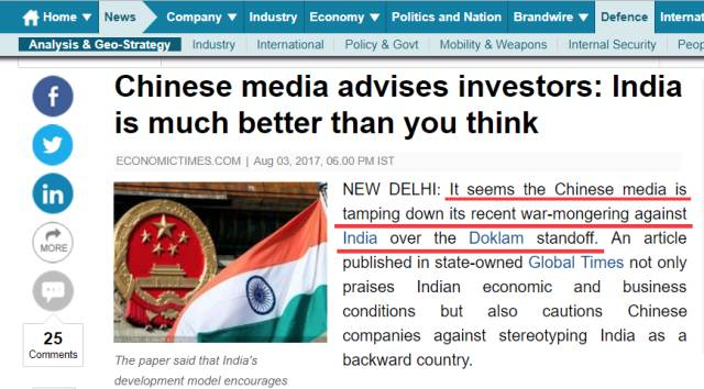 而一些希望事情早点“翻篇”的印度媒体,更是把我们《环球时报》英文版经济组刊登的一家民间智库聊印度投资环境的文章,硬说成了是“中国在释放降调翻篇的信号”,弄得作者和编辑都很尴尬…