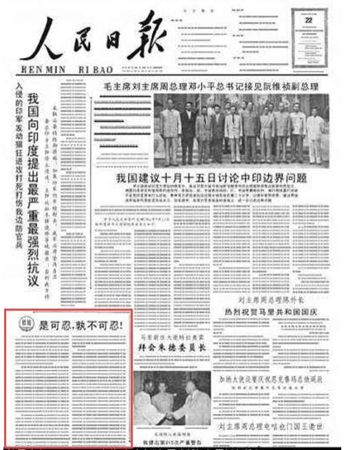 所以,真正有点脑子的印度专家,现在都在呼吁政府赶紧通过谈判和中国解决问题,不要等到《人民日报》的头版再次刊出“是可忍,孰不可忍”…