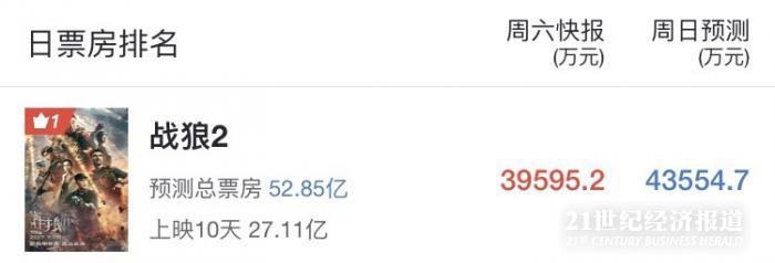 猫眼专业版票房预测显示,《战狼2》预计总票房为52.85亿。