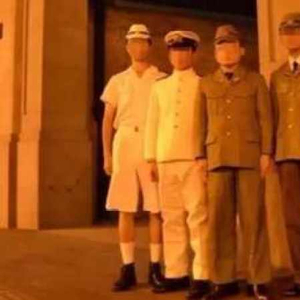 4名男子穿日军制服合影 四行仓库纪念馆:无耻