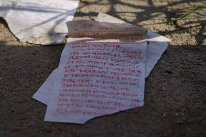 “蝶贝蕾”传销窝点地面上遗留的“听课笔记”。图 / CFP