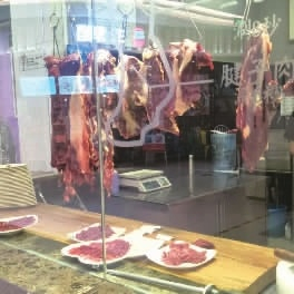 8月7日,长沙某潮汕牛肉火锅店内,不少消费者在用餐(大图);而另一此类火锅店悬挂了大量新鲜牛肉,以示其对食材的重视(小图)。记者 朱蓉 摄