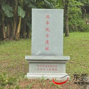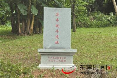 东莞时间网讯 昨日,记者在大岭山森林公园虎门主入口处的山坡上,看到一块大理石碑,上面刻着“远丰战斗遗址”几个红色的大字。下面还刻着中共东莞市委员会、东莞市人民政府的字样。