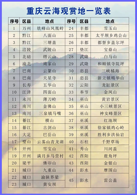 重庆云海观赏一览表。重庆市规划局供图 华龙网发