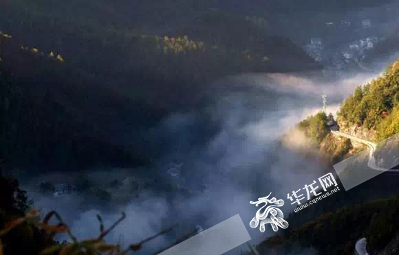 上盖的公路号称“四十五道拐”,每当雨后初晴,云雾让每道拐更显神秘,仿若玉带在眼前飘忽过去。置身川河盖云海,那种惬意无可言状。