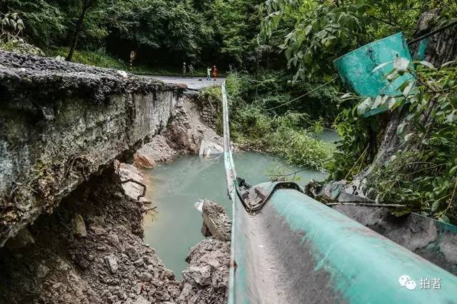 至于桥的木制栈道,也早已被四周塌方砸垮,桥被冲垮,要通行只得从塌方后堵在水中的石堆上过去,芦飞一行人所见均是一片狼藉,水已经从平时的青绿透亮变得浑浊,多处树干被石头砸断,到处横在路边。